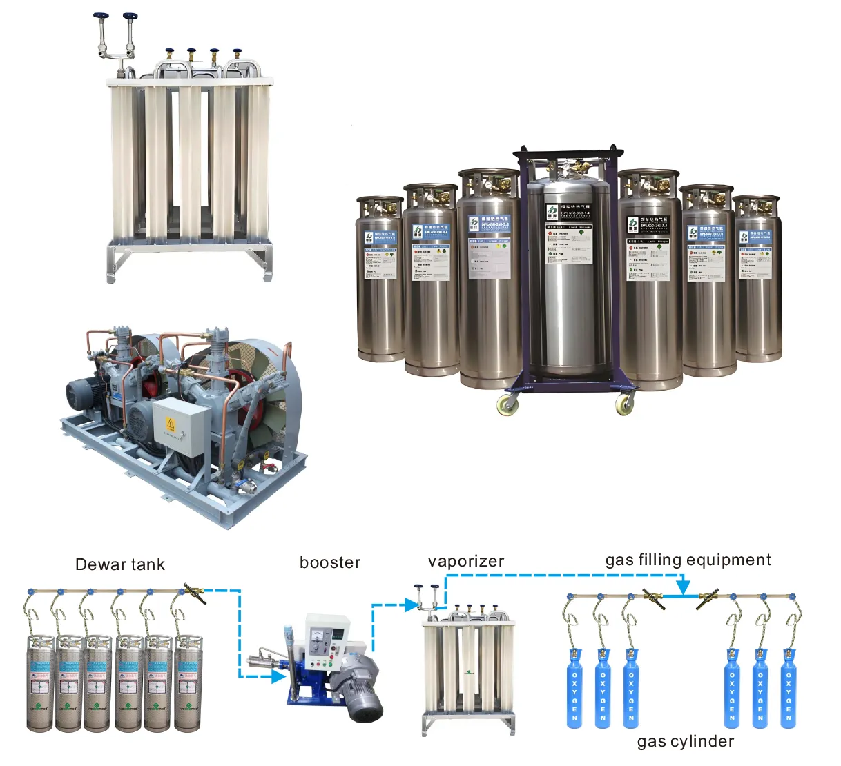 मेडिकल तरल अक्सिजन प्रणाली उत्पादन, भण्डारण, र कम तापमान तरल पदार्थको यातायात को लागी प्रयोग गरीन्छ। यो चिकित्सा, औद्योगिक, राष्ट्रिय रक्षा, र वैज्ञानिक अनुसन्धान उद्योगहरूमा व्यापक रूपमा प्रयोग गरिएको छ। परम्परागत स्टील ग्यास सिलिन्डरको तुलनामा, यसको सुविधाजनक यातायात, ऊर्जा-बचत, सुरक्षा र विश्वसनीयता का फाइदाहरू छन्।